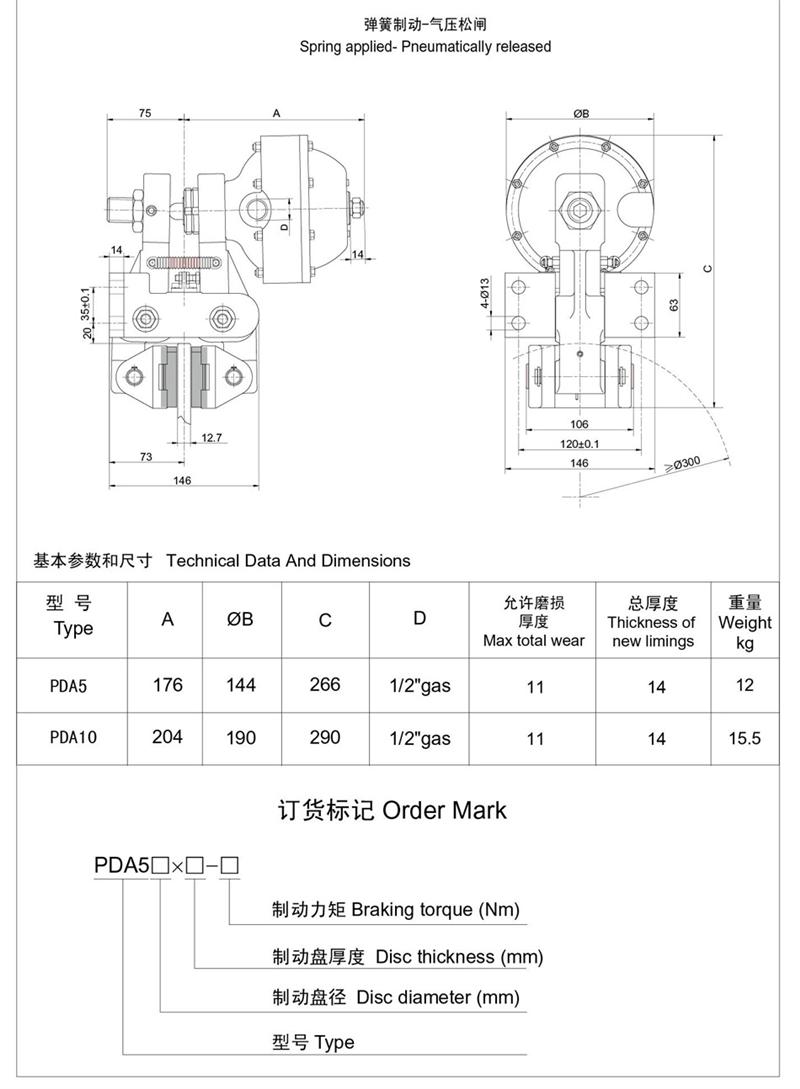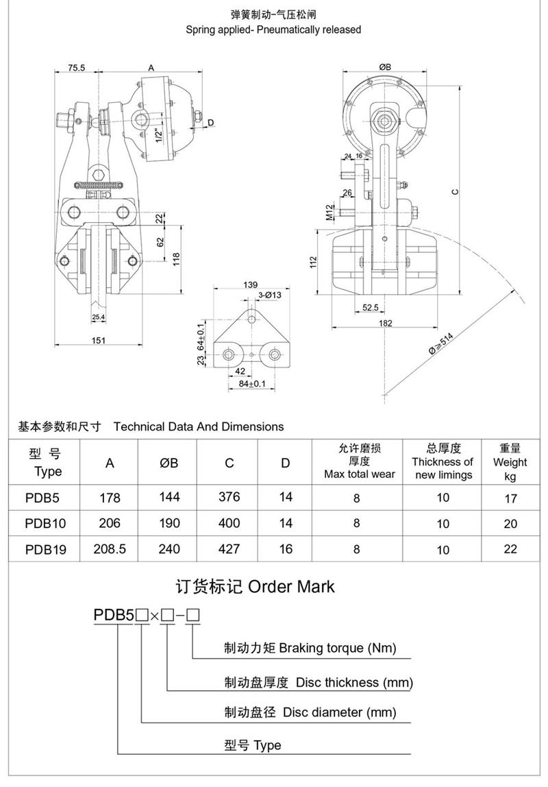 ■有常閉式設(shè)計(jì):彈簧制動(dòng),氣動(dòng)釋放(開閘);有常開式設(shè)計(jì):由氣壓制動(dòng),彈簧釋放,制動(dòng)力可隨氣壓的改變而變化,使用時(shí)可根據(jù)需要靈活改變。